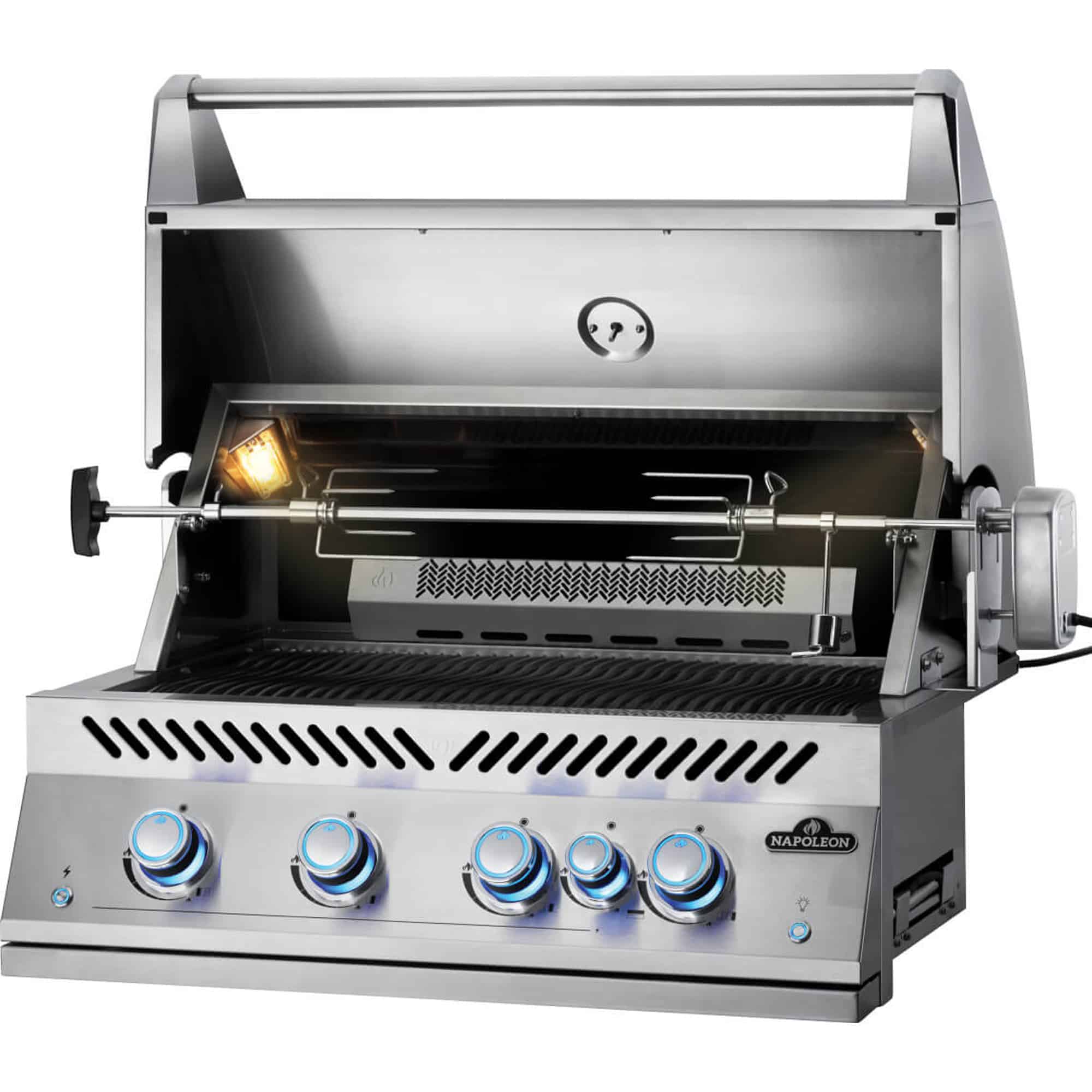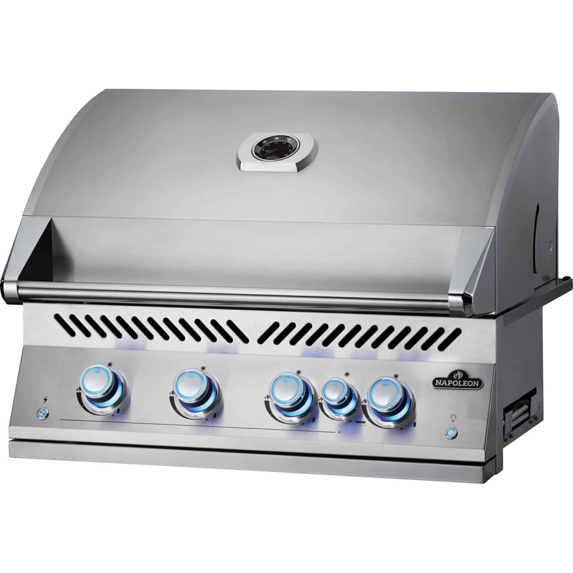 High-performance 32-inch built-in grill with durable cooking grids, illuminated safety knobs, interior lighting, and an easy-to-install design ideal for custom outdoor kitchens.