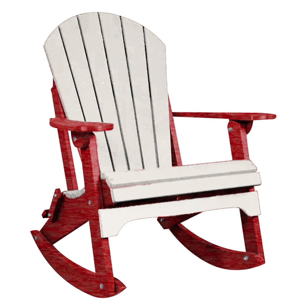 Handcrafted outdoor rocking chair made from recycled poly lumber. Smooth motion, weather-resistant durability, and a 20-year residential warranty.