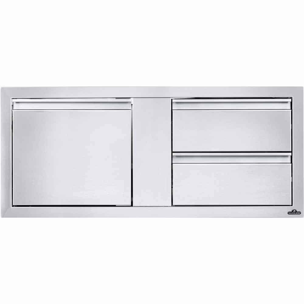 Creating your own custom grill island has never been easier with Napoleon’s Built-In Components. Every great outdoor kitchen needs storage; this 42″ x 16″ built-in component has everything you need for storage. Featuring two generous drawers and a single large door for storage. The stainless steel construction, soft closing hardware, seamless trim, and anodized aluminum handles provide durability and endless installation possibilities.
