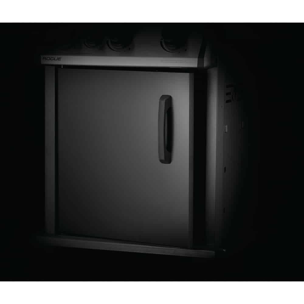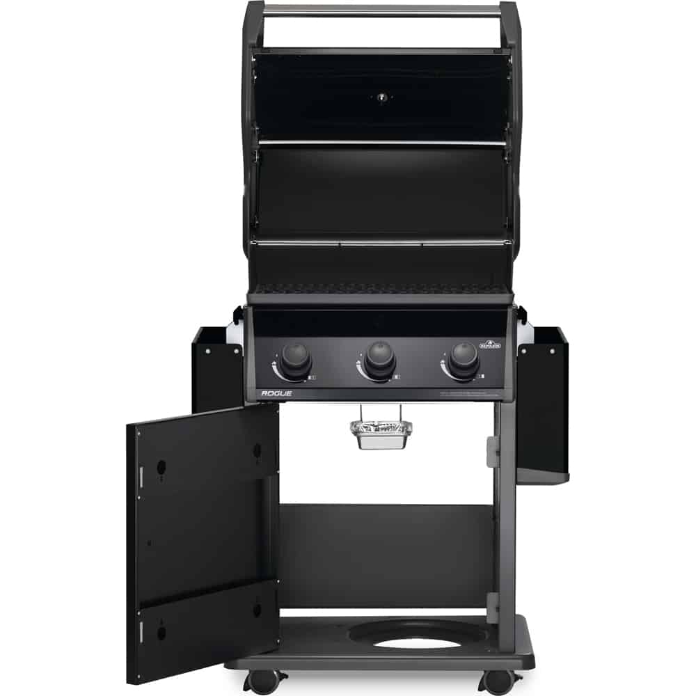 Napoleon’s Rogue® 425 Propane Gas Grill in black, is a premium quality gas grill with an affordable price. Three burners light every time with a battery-free ignition. This grill boasts precise temperature control, high heat searing over cast iron cooking grids and stainless steel sear plates for even heating and to keep your grill clean. The stylish black exterior is highly durable and easy to clean.