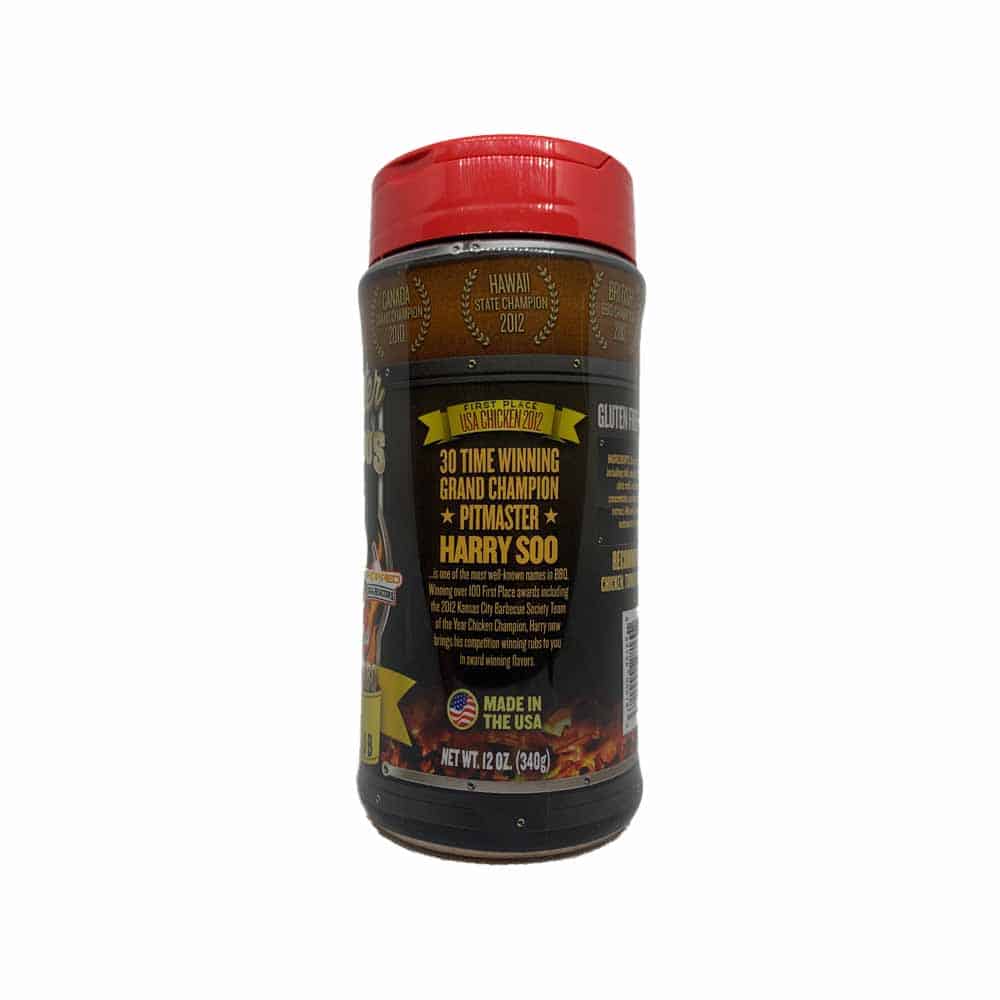 Could one of Harry’s most popular rubs actually get better? Yes; now with super Umami flavors without MSG! This competition rub helped Harry win the 1st Place USA KCBS Chicken Champion 2012 Team of the Year chicken category. Harry had placed 3rd in chicken in 2010 and continued to refine his chicken rub until he hit the top spot in 2012. This rub is recommended on chicken, turkey, duck, and seafood. SKU: SYD12-C2