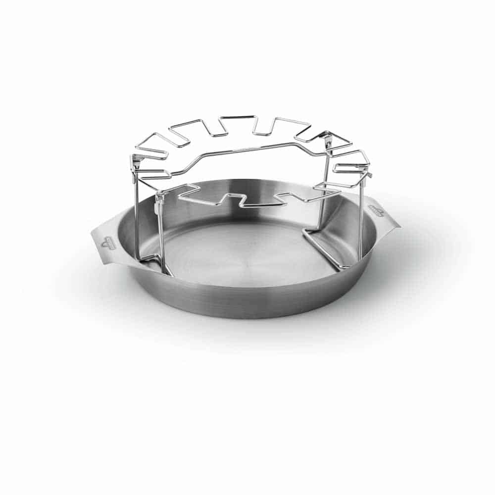 Napoleon’s Chicken Leg Grill Rack is ideal for one-pot meals and versatile enough to make many dishes at once, like chicken and paella. The upright rack allows for even cooking, holding up to 12 poultry legs or wings upright. Use the topper as a drip pan or to cook side dishes simultaneously or separately. Stainless steel is durable and dishwasher safe. The rack is foldable for easy storage.