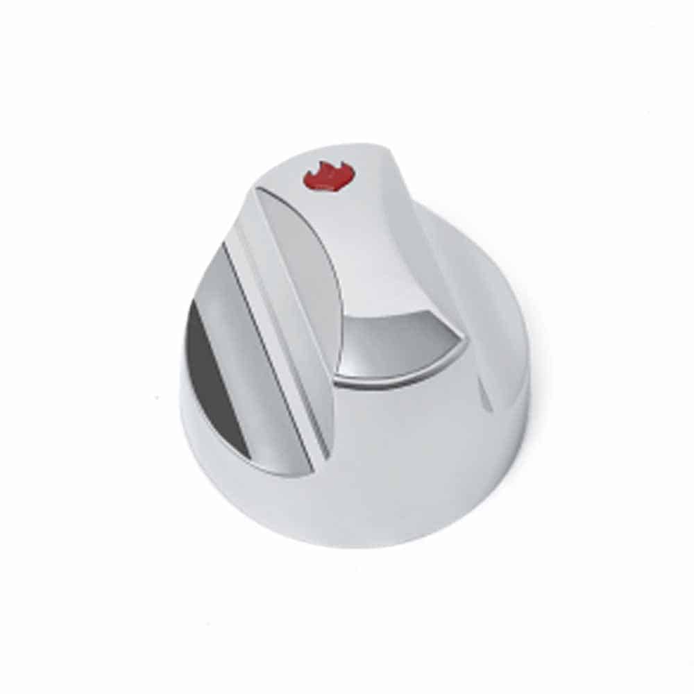 Replacement small control knob for with red flame for Rogue® Series Gas Grills. For replacing the smaller side burner and rear burner knobs on the grill. Ergonomic beveled grip like the knob on a stove. Looks like stainless steel to match the grill. Clear flame in knob indicates gas power level for each burner. SKU: S88006
