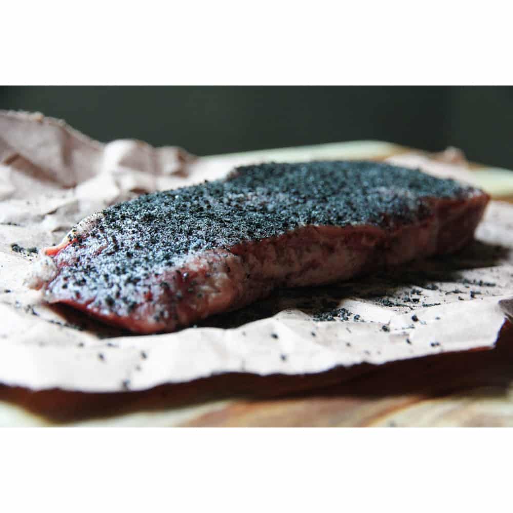 Black is our best selling seasoning. It’s an activated charcoal rub with vivid color contrast.